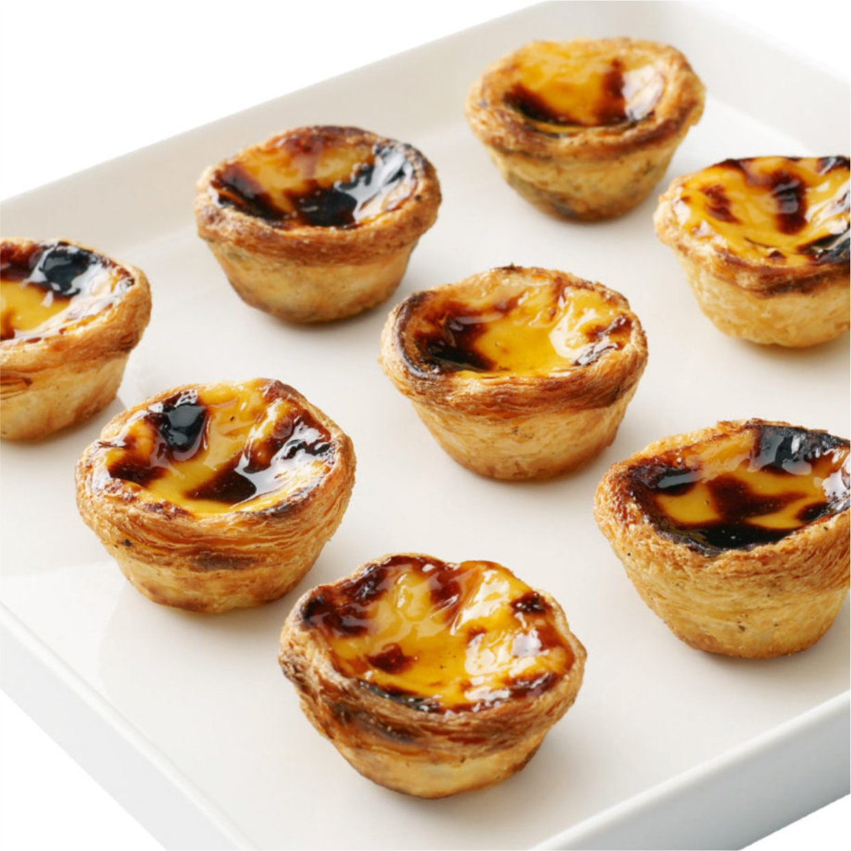 El Pastel de Nata (Pastéis de Nata) es una tarta de crema pastelera tradicional portuguesa con una corteza hojaldrada y mantecosa y un relleno cremoso a base de huevo.. Es uno de los pasteles más emblemáticos y apreciados de Portugal, con una historia que se remonta a más de 200 años.